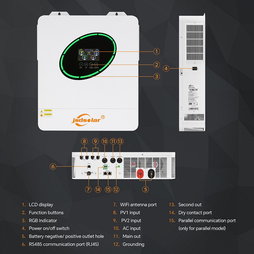 Инвертор гибридный солнечный Jsdsolar J12000HС WI-FI 12KW 48V/230V + зарядное