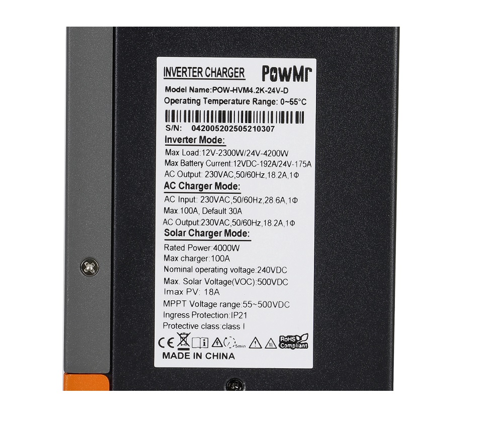 Инвертор гибридный солнечный PowMr POW-HVM4.2K-24V-D 12V/24V/230V + зарядное