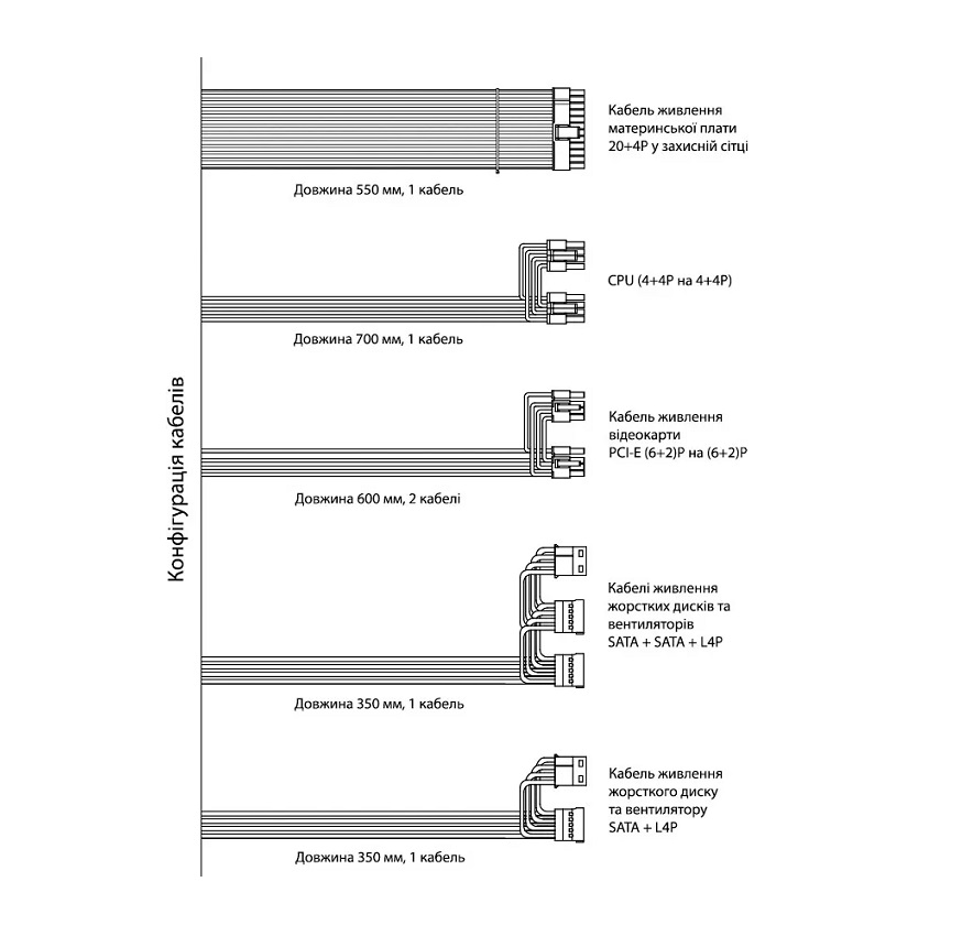 мощность 700 Вт, 12 cm FAN, разъем для материнской платы 20+4 pin,2 x 4+4-pin CPU, 2 x 6+2 pin PCI-E, 3 x SATA, 2 x Molex, защиты: OVP, SCP, OPP