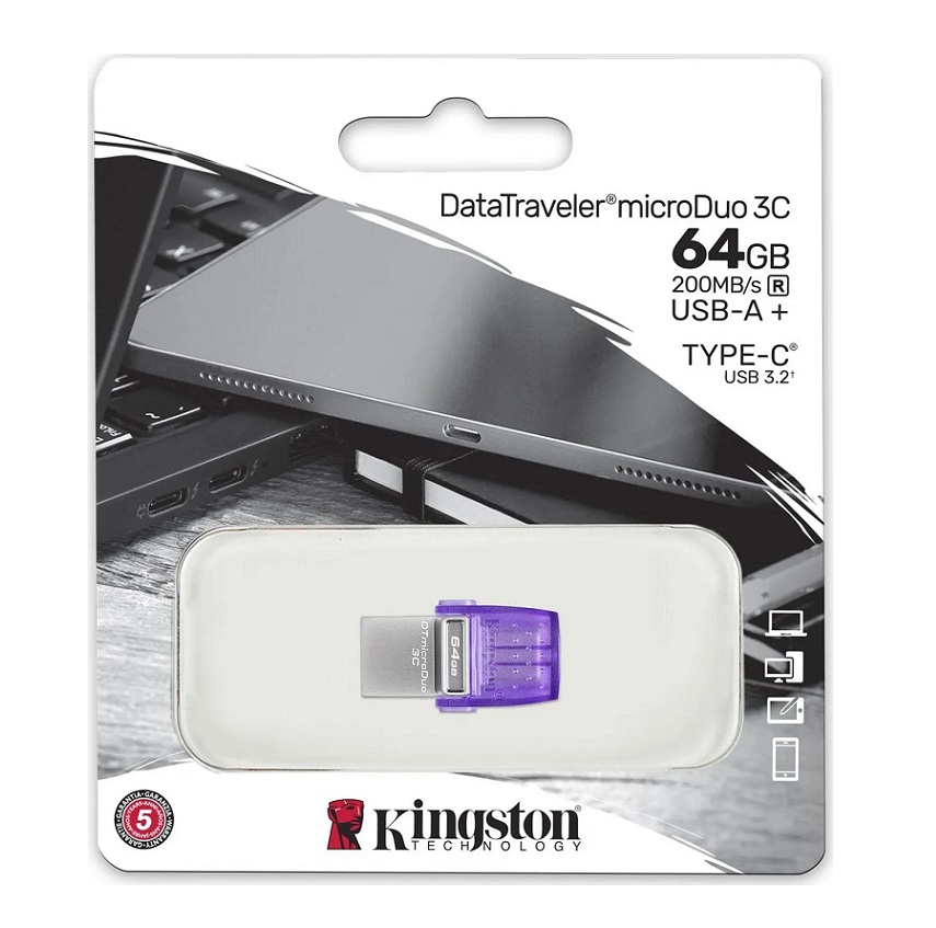 64ГБ, USB 3.2 Gen.1 + USB Type-C, корпус: пластик + металл, скорость чтения до 200 Мб/сек