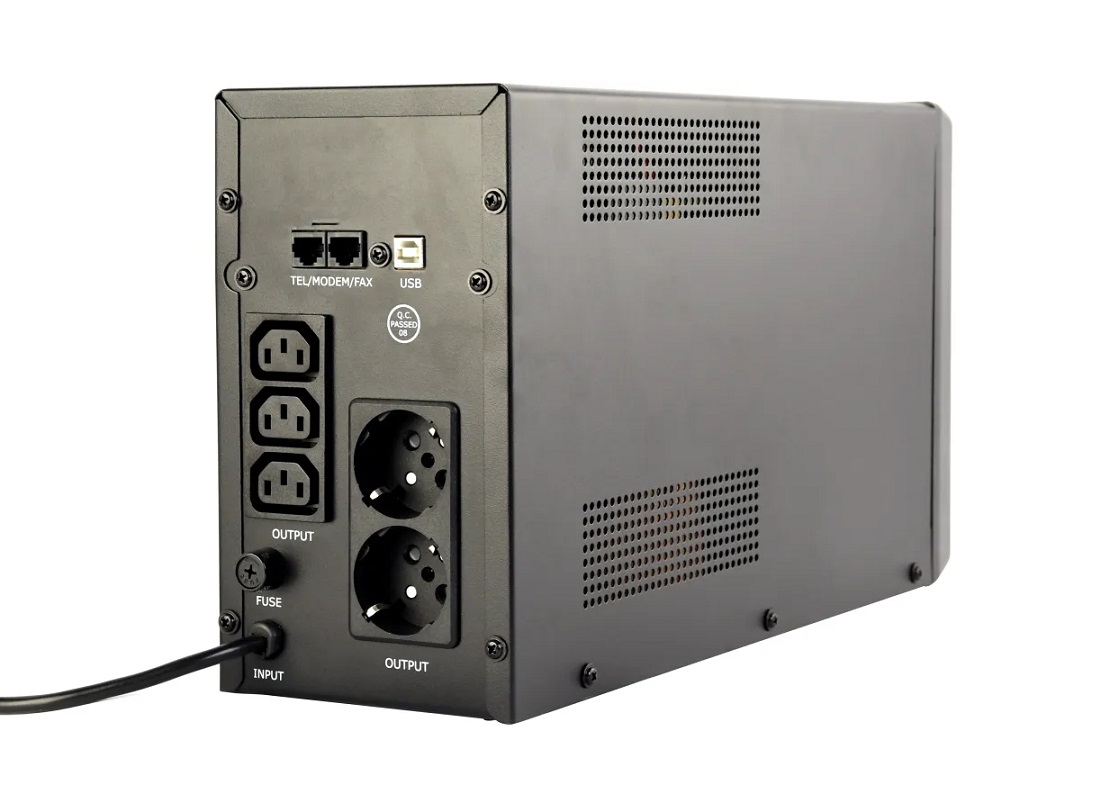 2000 ВА, 1200 Вт, Линейно-интерактивный, входное напряжение 165-275В, входная частота 50Гц, напряжение батарей 12В, выходное напряжение 220В±10%, выходная частота 50Гц±0,5%, время переключения на батарею <10мс, время работы от батареи 8-20 мин, 3 розетки C13, 2 евророзетки, USB интерфейс, 380x225x125 мм, 12.9 кг