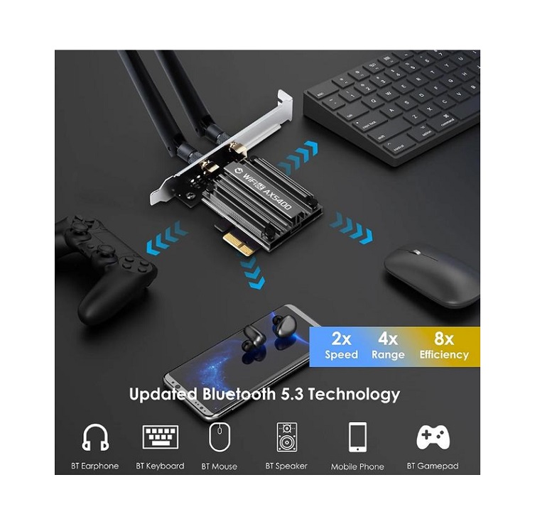 Net Card FENVI PCE-AX5400 2.4Ghz/5Ghz/6Ghz 802.11AX + Bluetooth5.3 PCI Express 1x