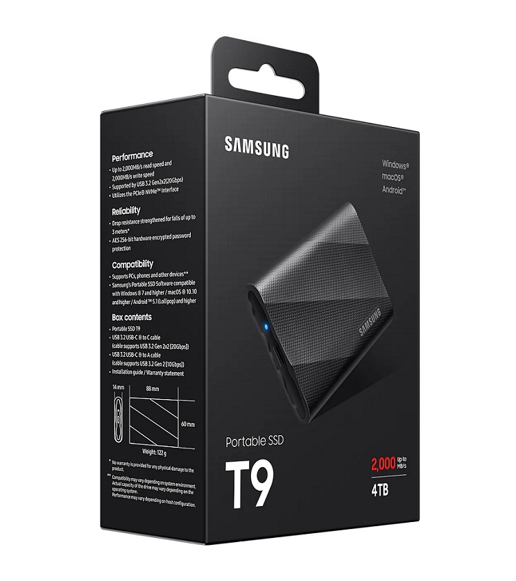 SSD 4Tb Samsung T9 Shield Black (MU-PG4T0B/AM) USB Type-C 3.2 Gen2