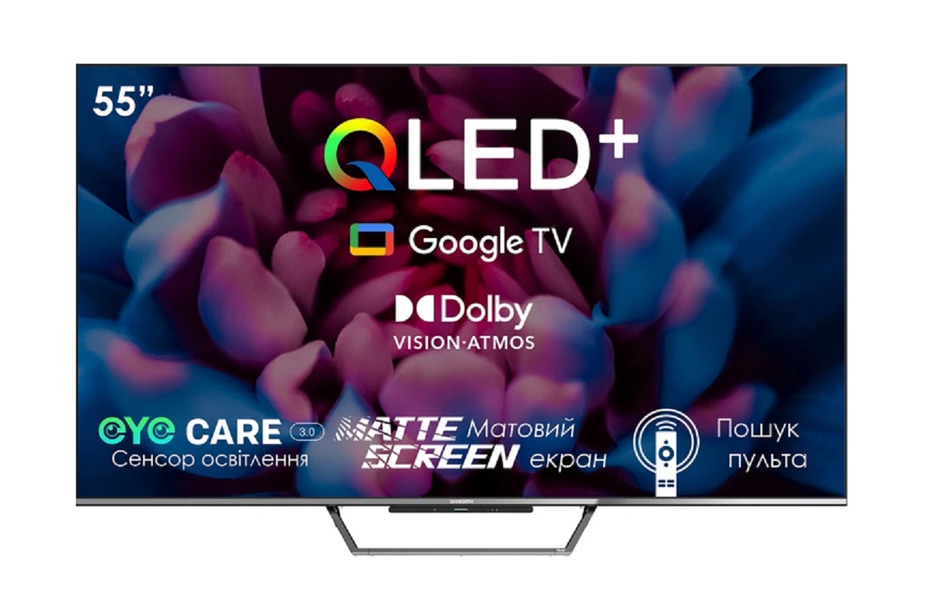 Официальная гарантия 12 месяцев, ЖК-телевизор, 55", 16:9, 3840x2160, 4K, 60 Гц, MVA, QLED, HDR10+, DVB-T2/DVB-C/DVB-S2, процессор Chameleon Extreme 2.0, 2/16Гб, динамики 2 х 12 Вт, 3 x HDMI v2.0, 2 x USB 2.0, LAN, Wi-Fi AC, Bluetooth, Chromecast, VESA 200 х 200, Google TV, 1225x772x266 мм, 13.1 кг