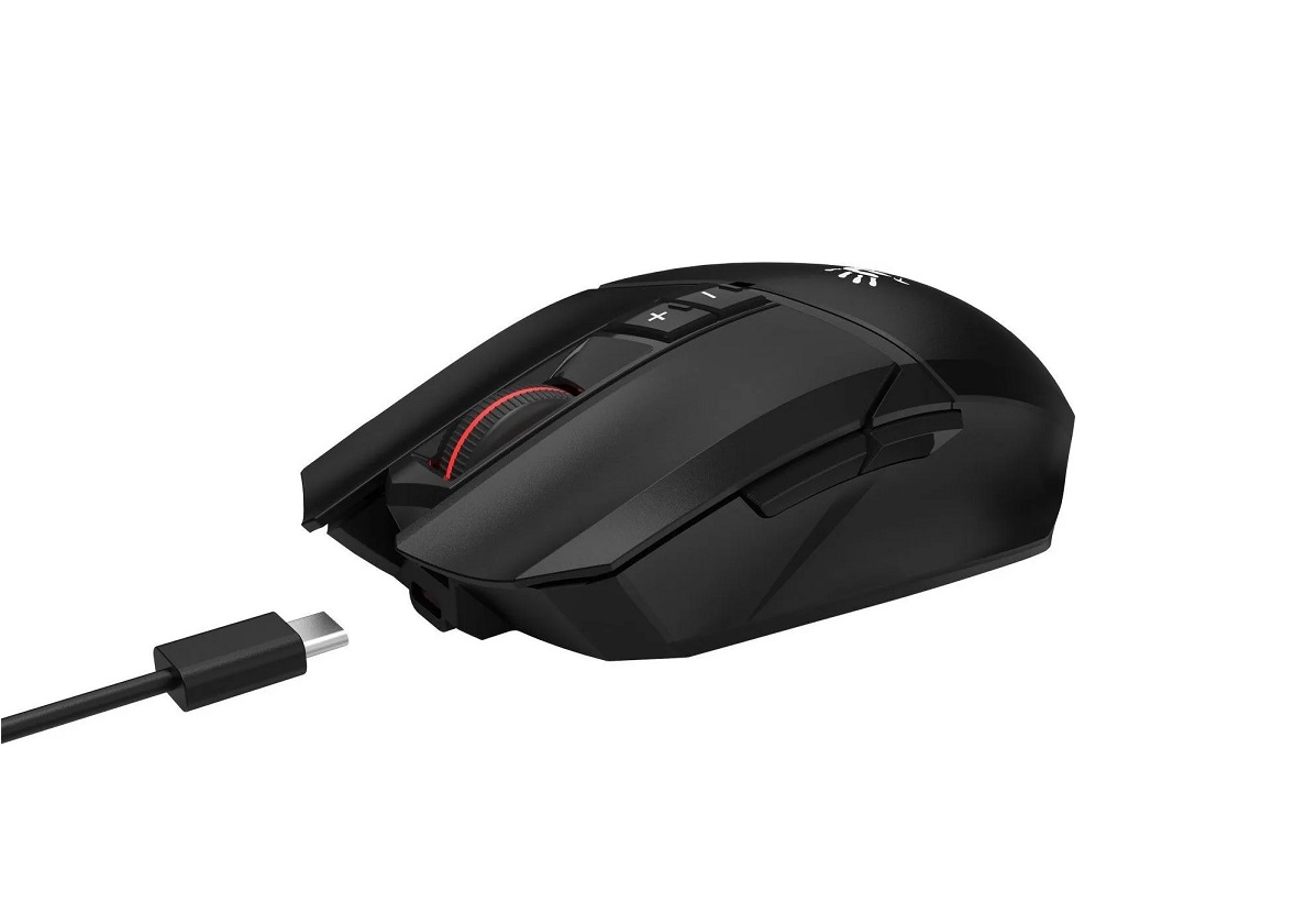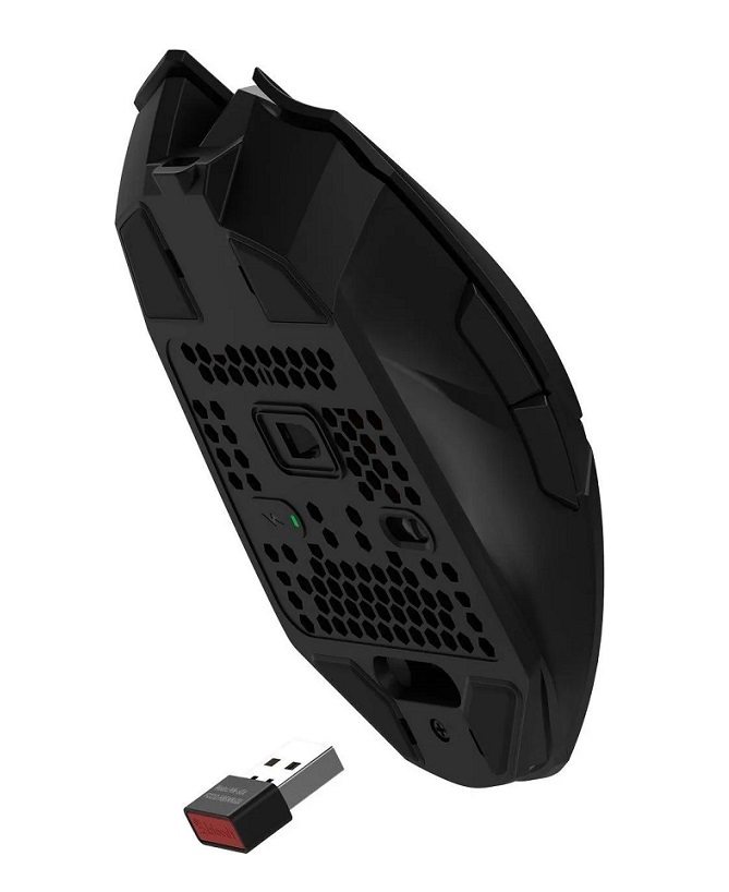 мышь игровая, оптическая, беспроводная, PixArt 3313, 100 - 12000 DPI, 7 кнопок (колесо прокрутки), RGB, встроенный аккумулятор, время автономной работы до 75 часов, 130х70х39 мм