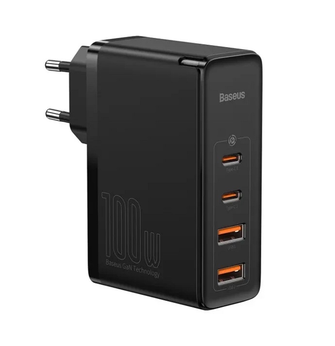 220V to USB/USB-C, PD (USB Type C Power Delivery) 100W и QC 4.0 (Quick Charge 4.0) 100 W, Type-C 1/ Type-C 2 Output: 100W Max: 5V/3A (15W); 9V/3A (27W); 12V/3A (36W); 15V/3A (45W); 20V/5A (100W), USB1/USB2 Output: 60W Max: 5V/3A (15W); 9V/3A (27W); 12V/3A (36W); 20V/3A (60W)общая мощность 100W, AC 200-240V 50-60Hz, черный