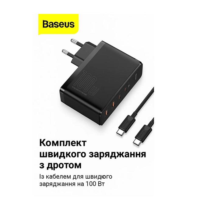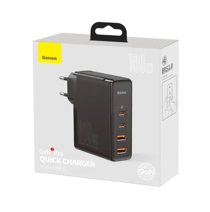 Зарядное устройство сетевое Baseus GaN2 Pro Quick Charger 2C+2U 100W+ кабель Type-C/Type-C Black (CCGAN2P-L01) USB Charger 100W Black