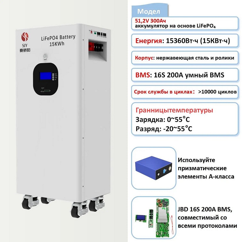 АКБ 51.2V LiFePO4 SJY 300Ач (OYC00002-D052-51-2V300AH) (15360Вт) BMS 16S200A