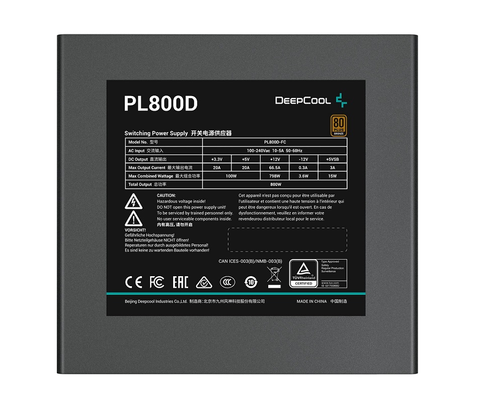 800 Вт, активный PFC, 80 PLUS Bronze, вентилятор 120 мм, 100-240 В