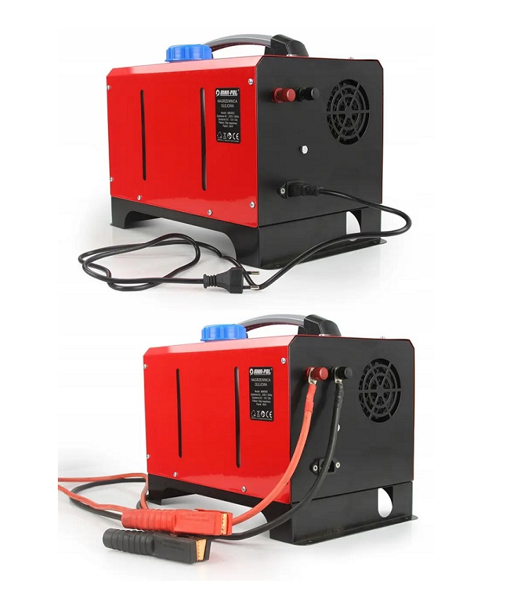 Дизель. Мощность: 8000 Вт. Питание 220В, дисплей, термостат, терморегулятор, пульт ДУ, вентилятор, датчик уровня топлива, ручка для переноски, 41х31х25 см, 10 кг