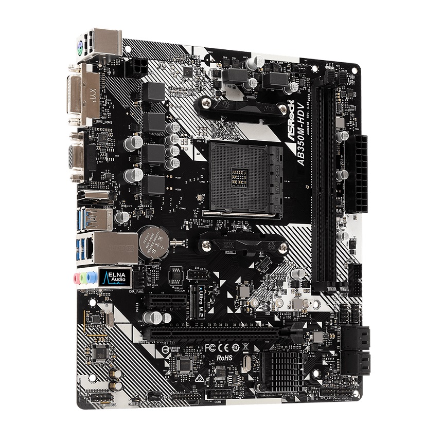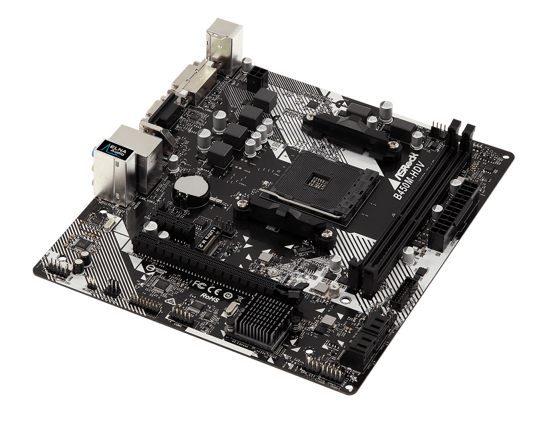 AMD B450, Socket AM4, 2 x DIMM DDR4 (2133-3200 МГц) Max. 32GB, 1xPCI-E x16, 1xPCI-E x1, Ultra M.2, M Key, 2242/2260/2280 (SATA & PCIE 3.0 x 4), 4 x SATA 6Gb/s RAID: 0, 1, 10 на основе AMD B450; LAN 10/100/1000 Mbit на основе Realtek RTL8111H, 8 channel Audio на основе Realtek ALC887; 12 USB, 6 USB 3.1 (4 на задней панели), 1xCOM, D-Sub, DVI, HDMI, Ethernet, PS/2 (клавиатура), PS/2 (мышь), форм-фактор microATX