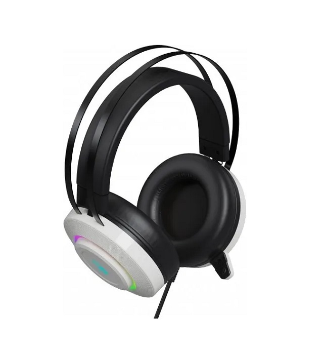 наушники закрытые проводные, микрофон, диапазон воспроизведения 20 - 20 000 Гц, чувствительность наушников 105 дБ, сопротивление 16 Ом; диапазон микрофона 100 - 10000 Гц, чувствительность микрофона -45 дБ,подключение USB, длина шнура 2.3 м, объемное звучание 7.1 (виртуальное), цвет белый
