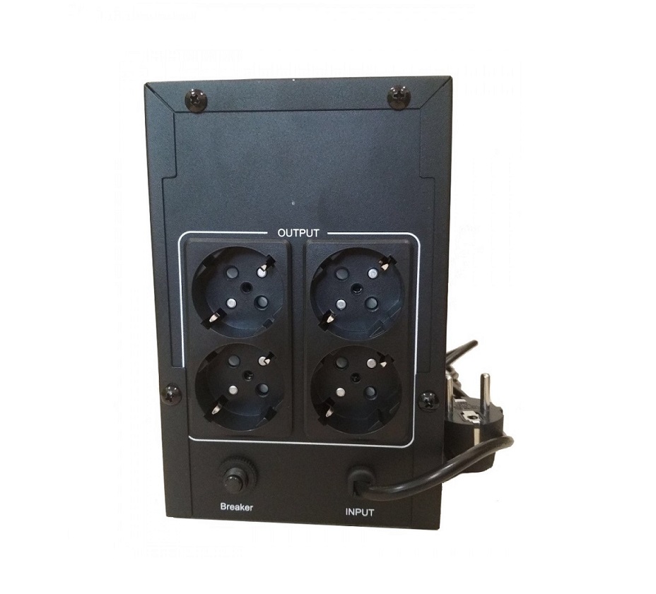 2000 BA, 1200 Вт, резервный (Off-Line), 140-290 В, аппроксимированная синусоида, время перехода на батареи меньше 10 мс, выходное напряжение 230 В, 4 розетки, LCD дисплей, 130x333x185 мм, кг