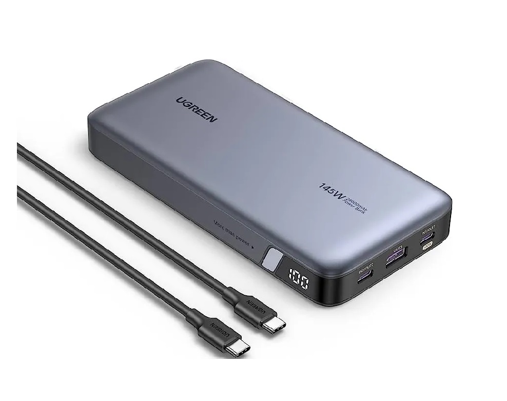 Li-Pol, полная зарядка за 2 ч, 2x USB Type-C, USB Type-A, до 140 Вт на одно устройство, Quick Charge 3.0, Power Delivery 3.1, Huawei Fast Charge Protocol (FCP), Samsung Adaptive Fast Charging (AFC), 160x81x27 мм, 505 г