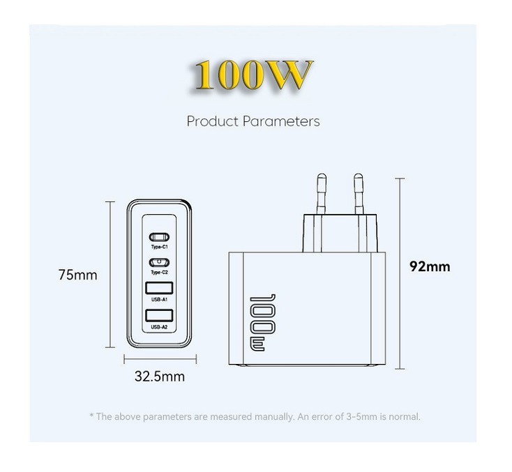 Зарядное устройство сетевое Essager 100W GaN Charger ES-CD37 White QC 4.0 + PD